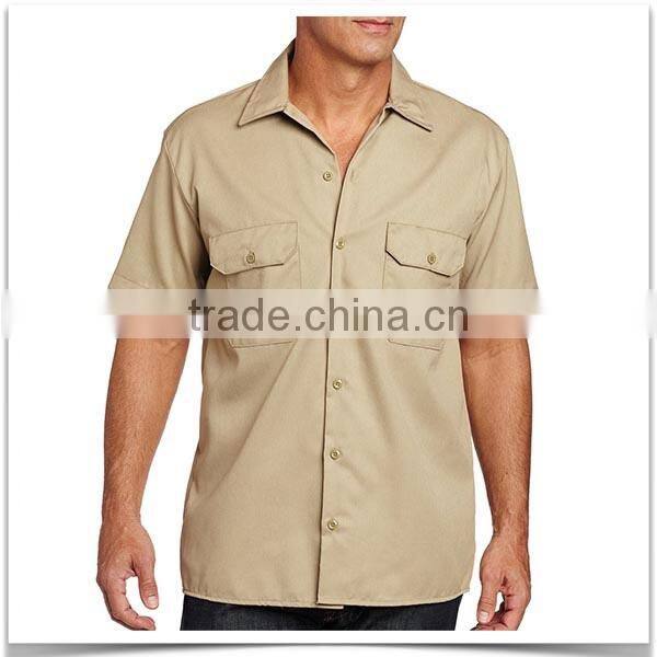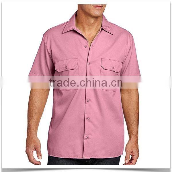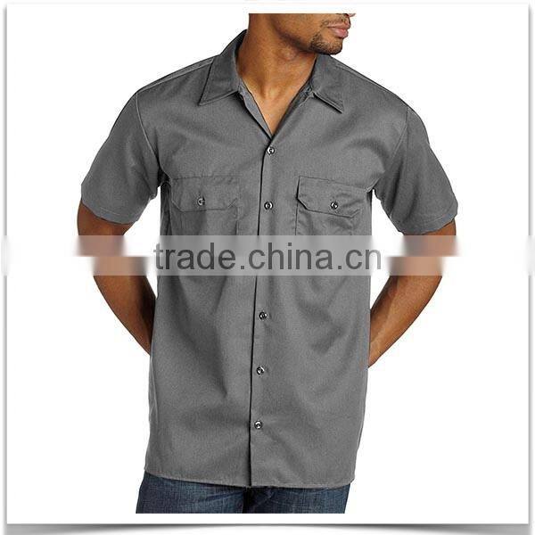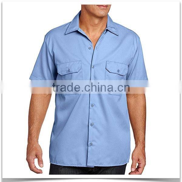 Custom Made Factory Wear Two Pocket Short Sleeve Mens Shirt With Button Closure