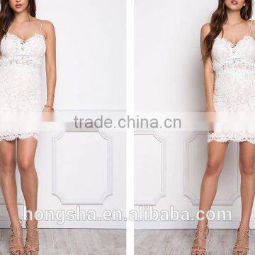 White Floral Crochet Sweetheart Dress Club Dress With Lace Fabric HSD5240