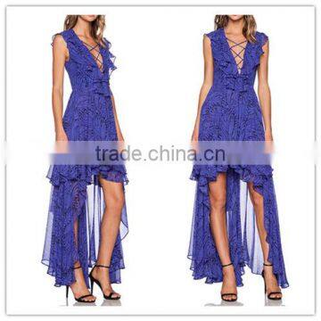 OEM Wholesale Women's Lace up Front Asymmetrical Hem GODDESS DRESS HSD5011