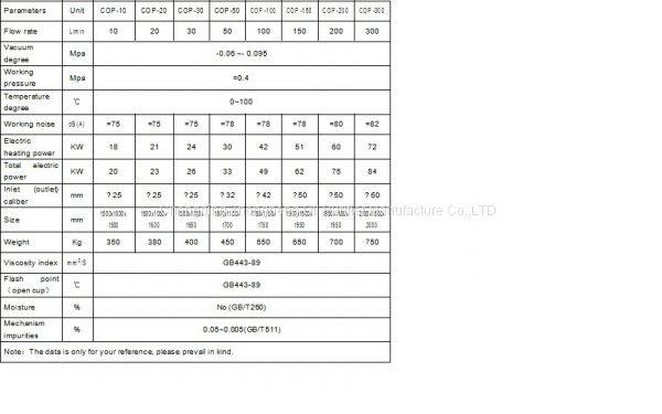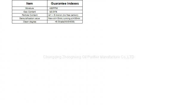 It adopt advanced technology for combination of coalescing separation and vacuum dewatering, to get the high precise of water and gas content. Using distinctive removing impurities system, filtering through double FH trapezoidal network and absorbing by high polymer without the mechanical power, can ensure the cleanness of purified oil reach NAS6.
