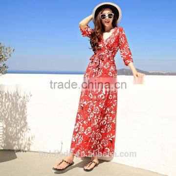 Wholesale V neck maxi beach dress ladies western long dress
