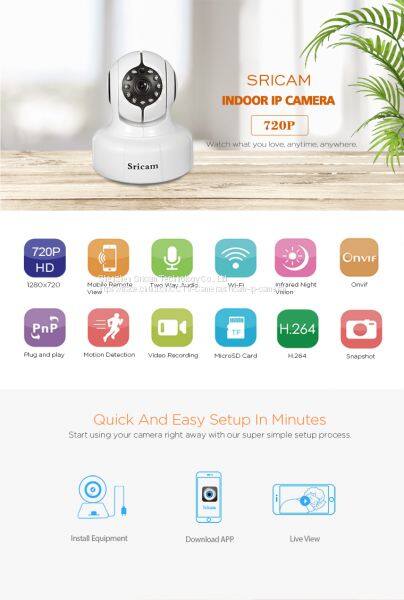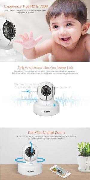 Sricam 720P High Resolution IP Camera With Alarm Sensor IP Camera Wireless Baby MonitorNegotiableMOQ: 1 Piece