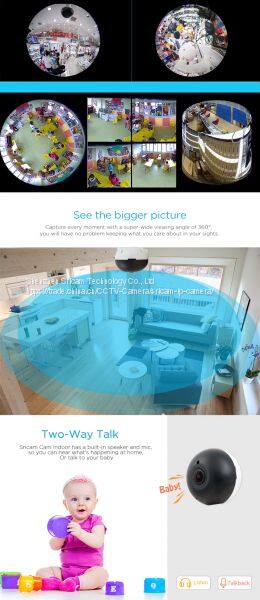 | Features: 1: Panorama: H.264, 1.3Mp, supports 360° panorama wide angle view. 2: P2P, PnP: Plug and Play. No need DDNS. No need Port Forwarding setup. 3: Sricam App: Supports iOS, Android smart phones or tablet PCs. 4: MicroSD Card: Supports up to 64GB microSD card for recording and playback. 5: Alarm: Supports Motion detection alarm, Phone push notification alarm and Whistle alarm. 6: AP Hotspot: Supports monitor on smart phones or tablet PCs by AP Hotspot, without internet. |