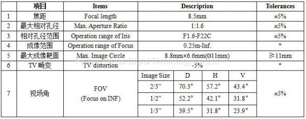 Machine Vision 8mm c Mount Lens for 2/3" Industrial Camera
