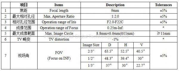 FA Lens for 2/3" Sensor C Mount Camera Automatic Inspection System 5MP 9mm Machine Vision Len