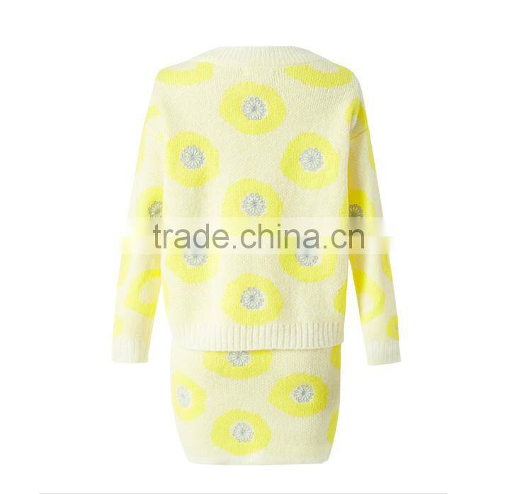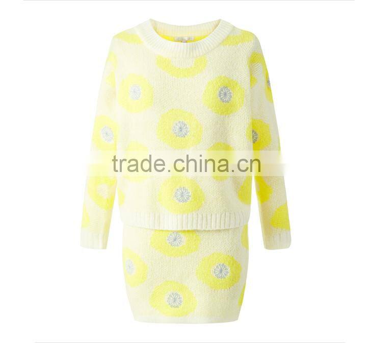 2015 Latest Fashion Women Round Neck Design Print Top Set