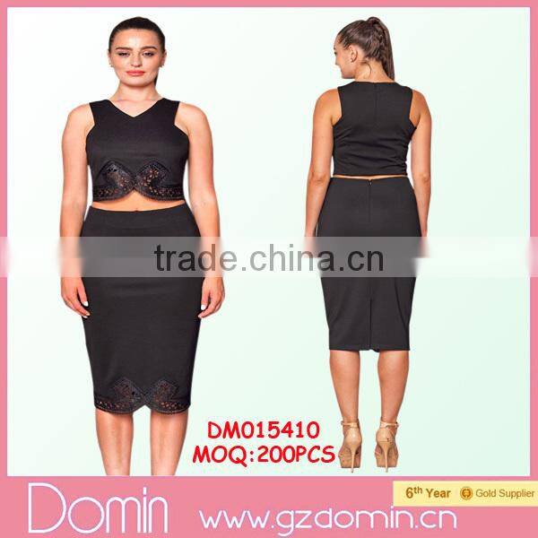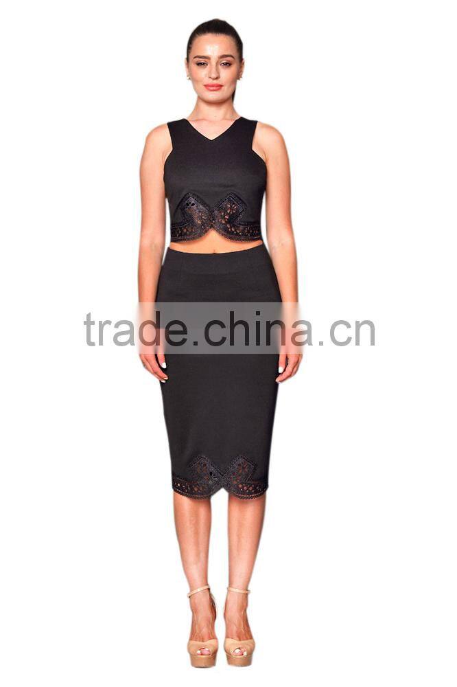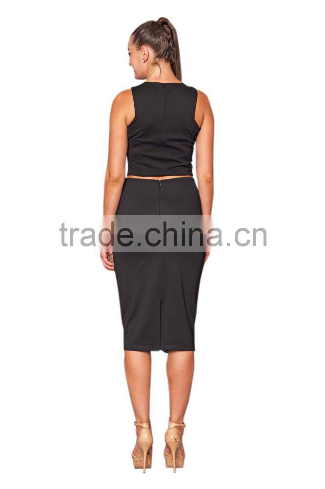 2015 New Arrival Black Crop and Skirt Co-ord Set