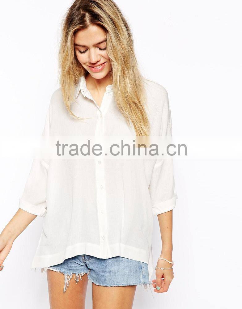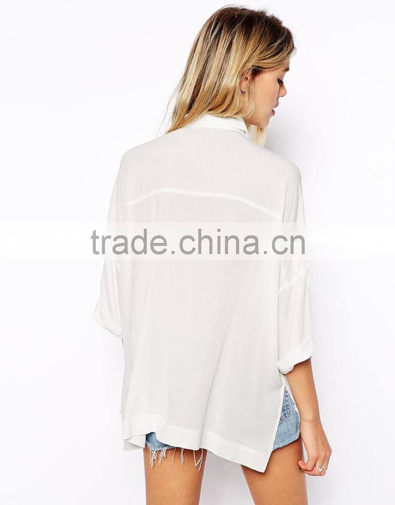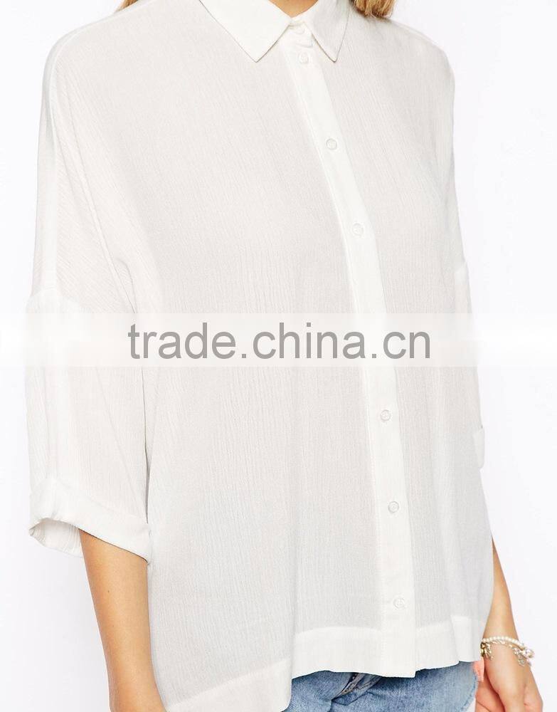 Home > Products > 2016 New In > 2015 New Fashionable Factory Point Collar Crinkle Oversize Blouse With Semi-sheer Woven Fabric