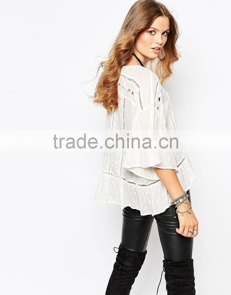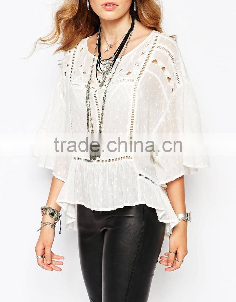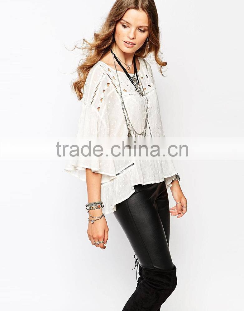 China factory OEM ODM 2015 new fashion customized Semi-sheer finish Top With Cut Out Detail
