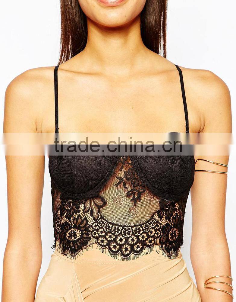 China Factory OEM ODM 2015 New Fashion Customized Lace Fabric Bra Style Top With Adjustable Straps