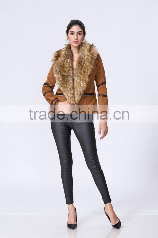 New Fashion Wholesale Clothing Manufacturers Women Suede Jacket With Fur Collar