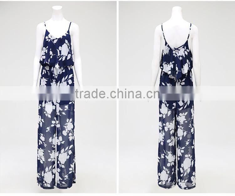 New Arrival Clothing Manufacturer Chiffon Flora Printed Women Jumpsuit