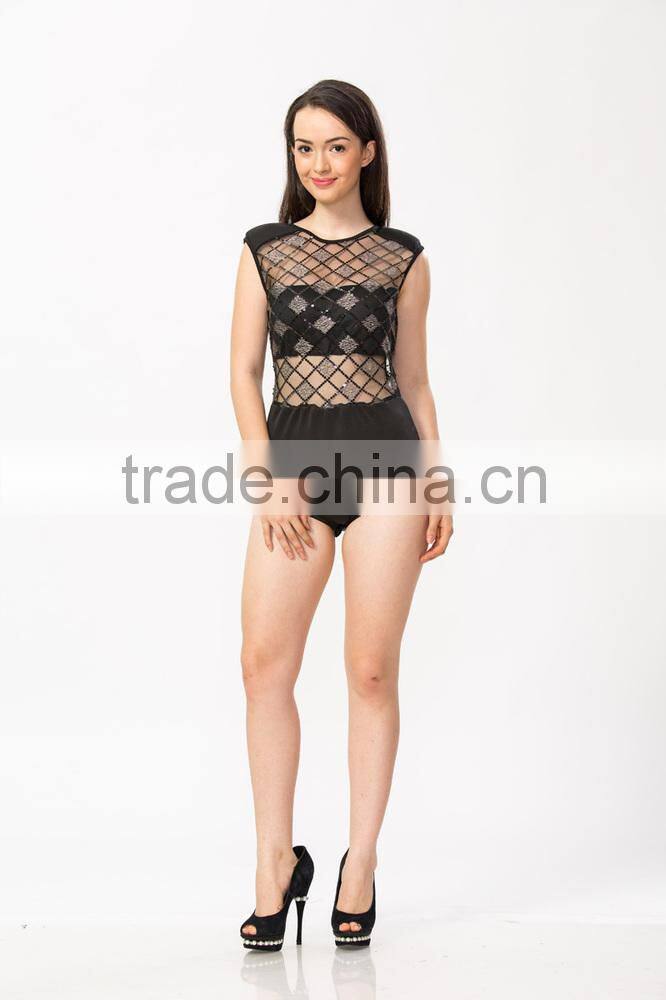 Elegant New Fashion Sequin Embellished lady bodysuit