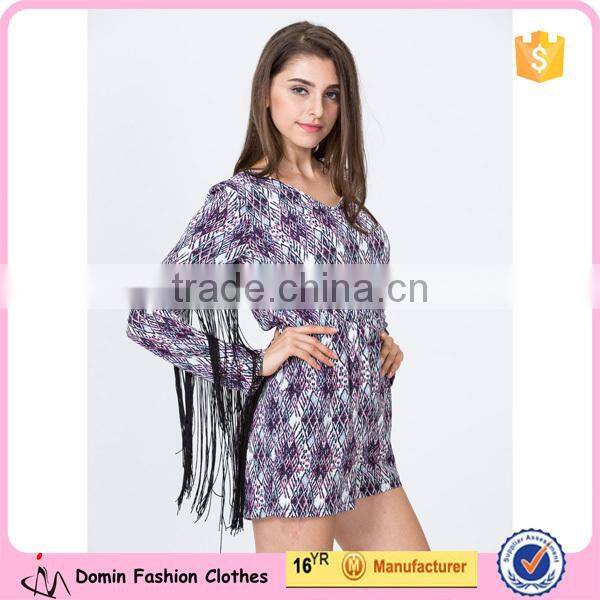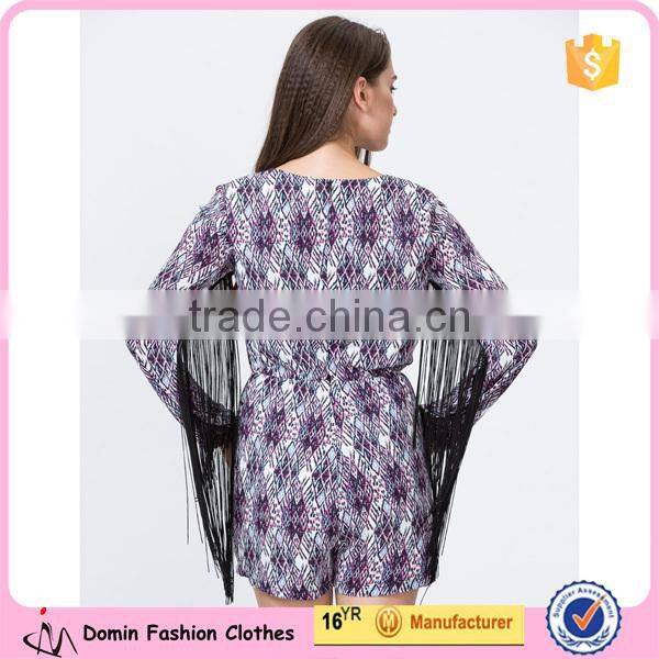 2015 New Summer Long Sleeve Floral Print Ladies Playsuit With Tassel