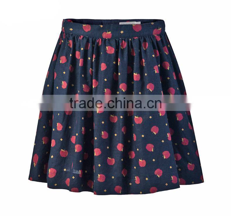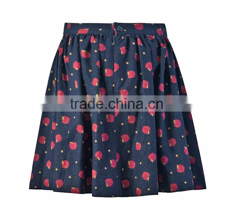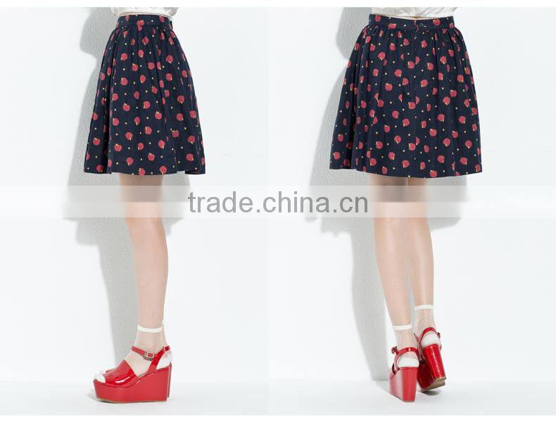 2015 New Fashion Apple Printed Back Button Petite Pleated Flippy SKirt