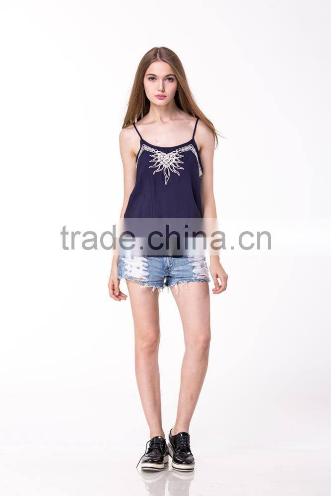 2017 New Fashion Embroidered Design Women Casual Camisole Top