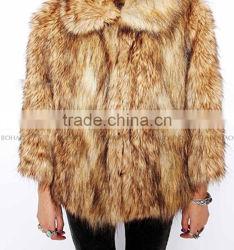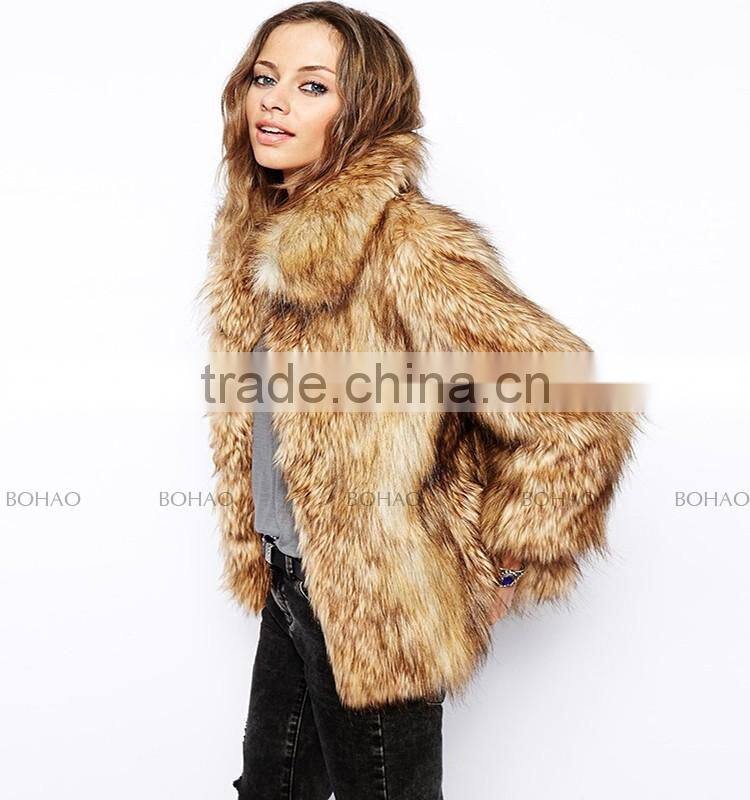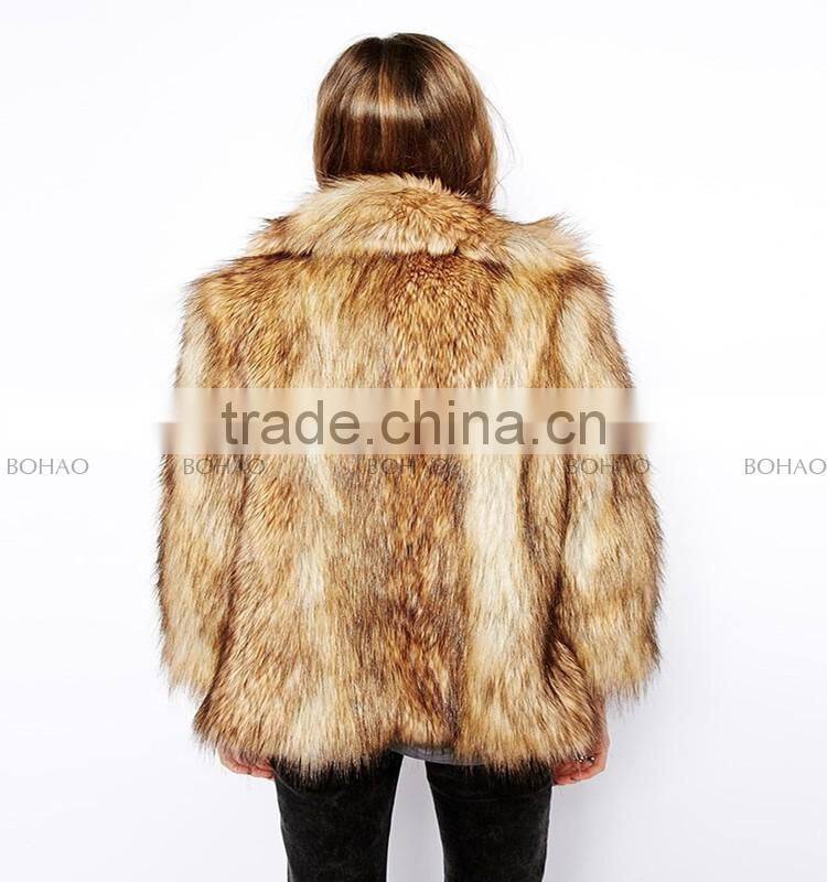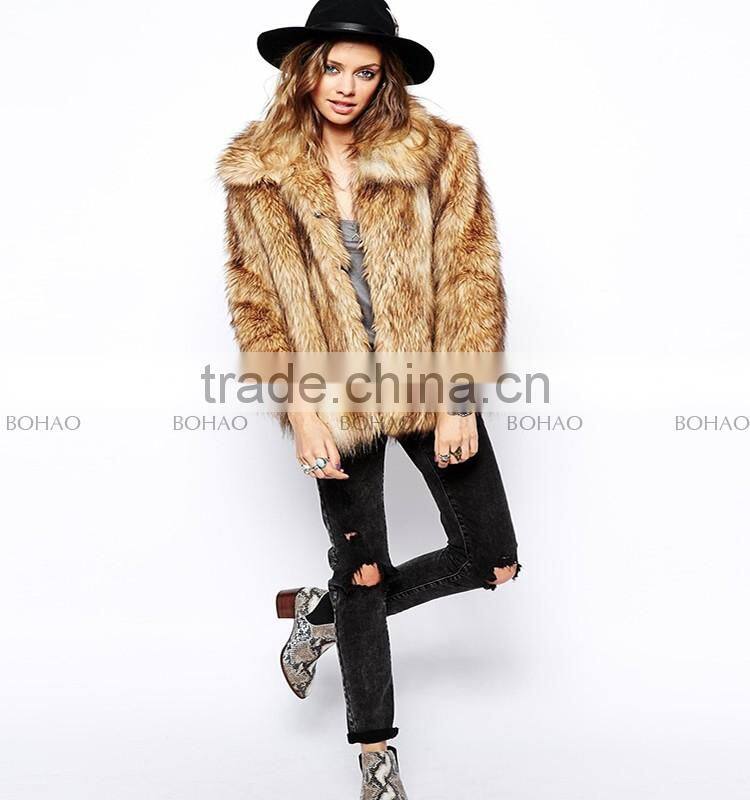 Hot Fashion Wholesale Price Ladies Lapel Faux Fox Fur Winter Coat for Women and Girls Clothing