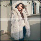 Fashion Design Finland Fox Fur Red Extra Long Coat With Large Collar