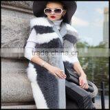 2016 Latest Design Vertical Stripes Plain Color Fake Fur Vest