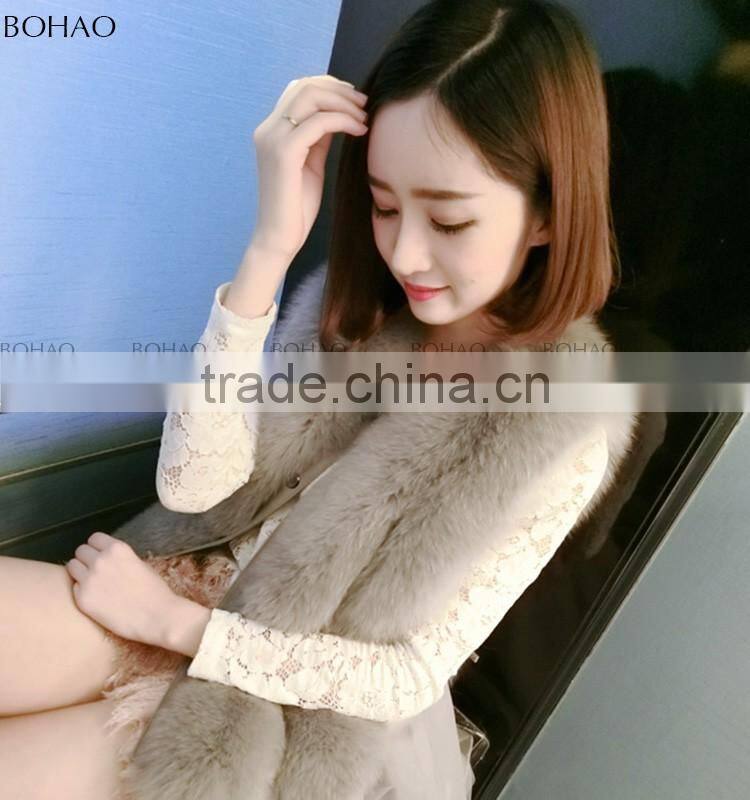 Home > Products > Faux Fur Vest/Waistcoat > Hot Sales Elegant Comfortable Lace Wholesale Woman Mesh Faux Fur Vest