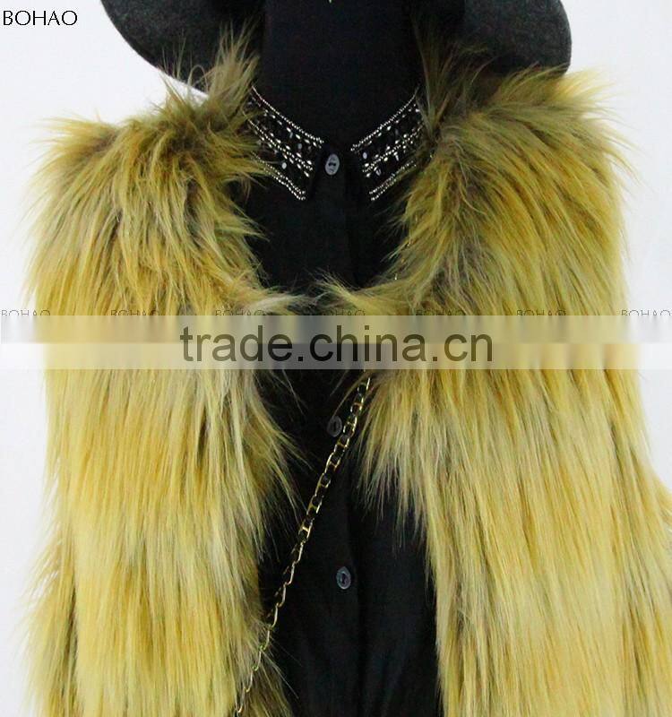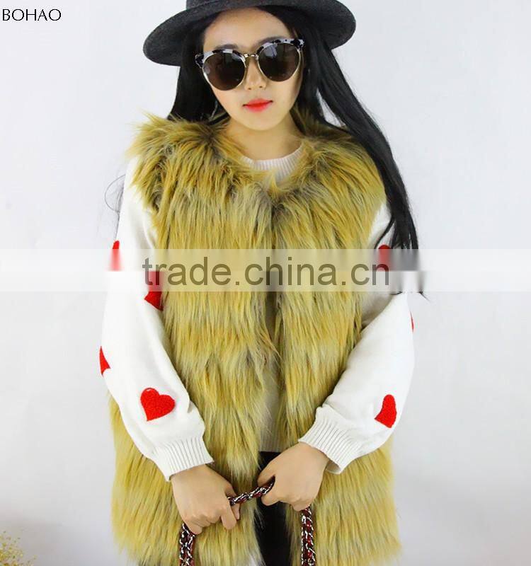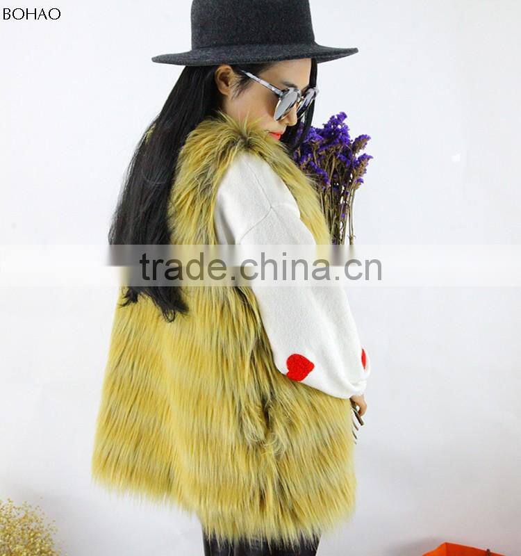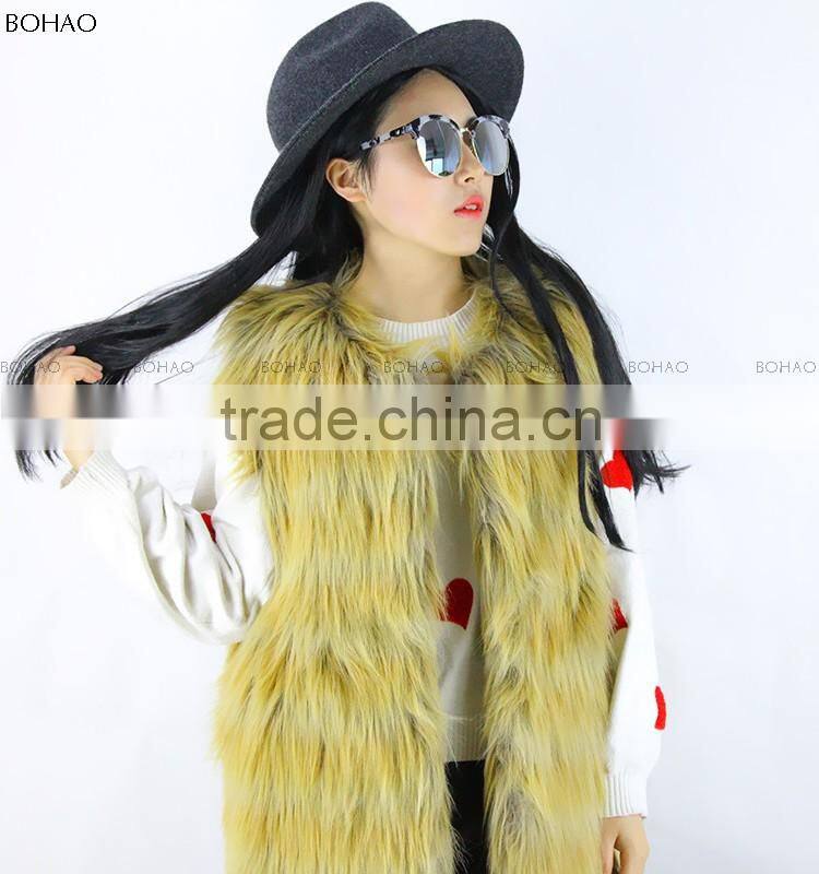 New Style Long Yellow Fur Fashion Wholesale Faux Fur Girls Vest