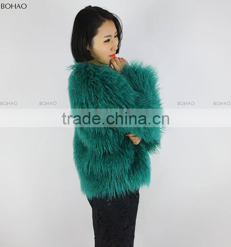 Wholesale Knit Mongolian Lamb Skin faux Fur Coats For Woman