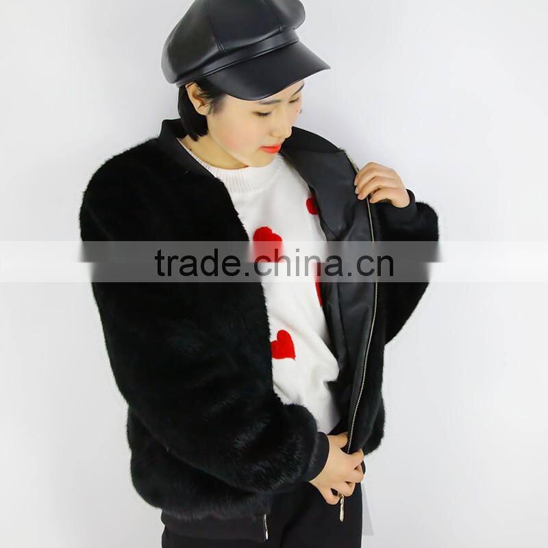 New Desgin Winter Warm Black with Zipper Faux Fur mink Jackets