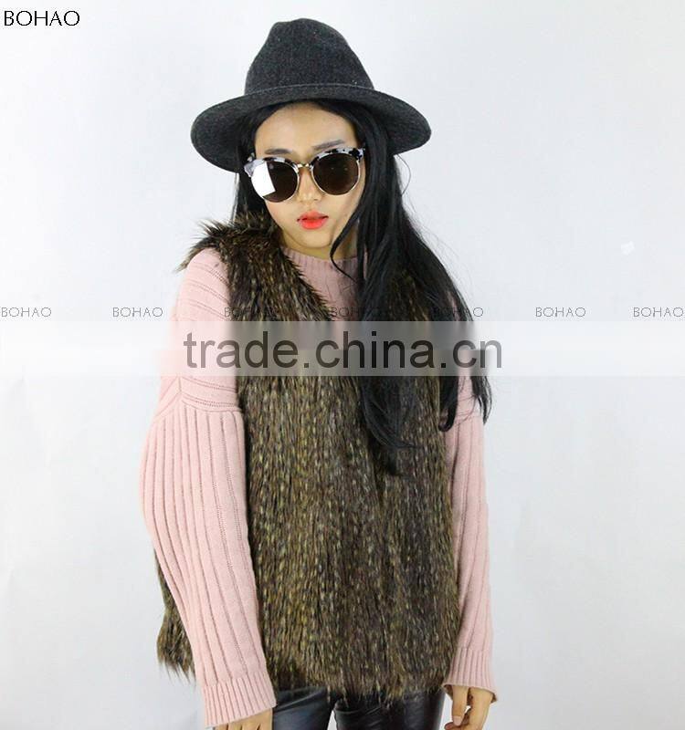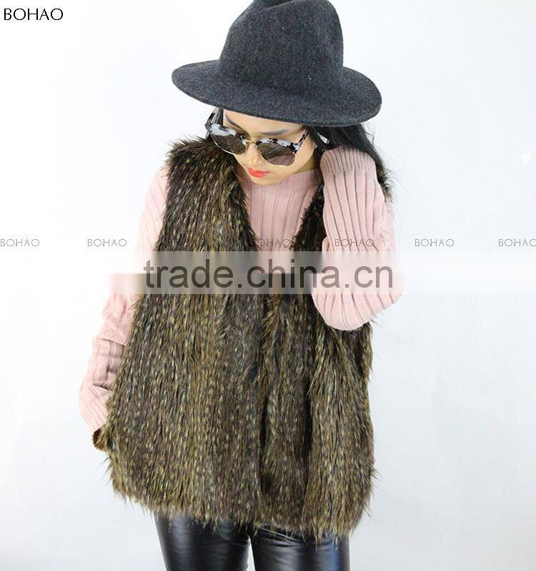 The Hotest Modern Ladies Simple High Quality Long Hair Fake Fox Fur Vest 2016