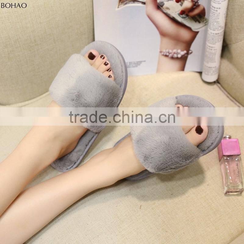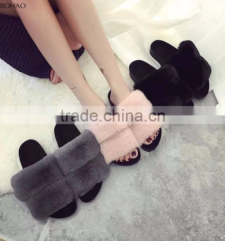 Fashional Indoor Many Colors Faux Fur Slippers For Women