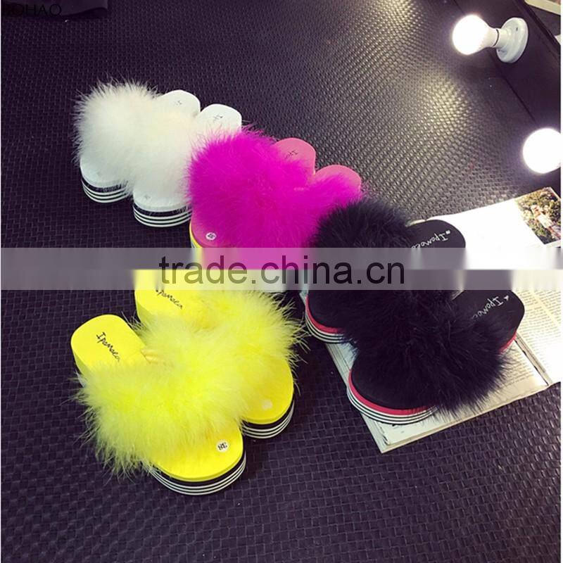 Pretty Nice Style Long Pile Women Ostrich Fur Slippers For Spring Summer