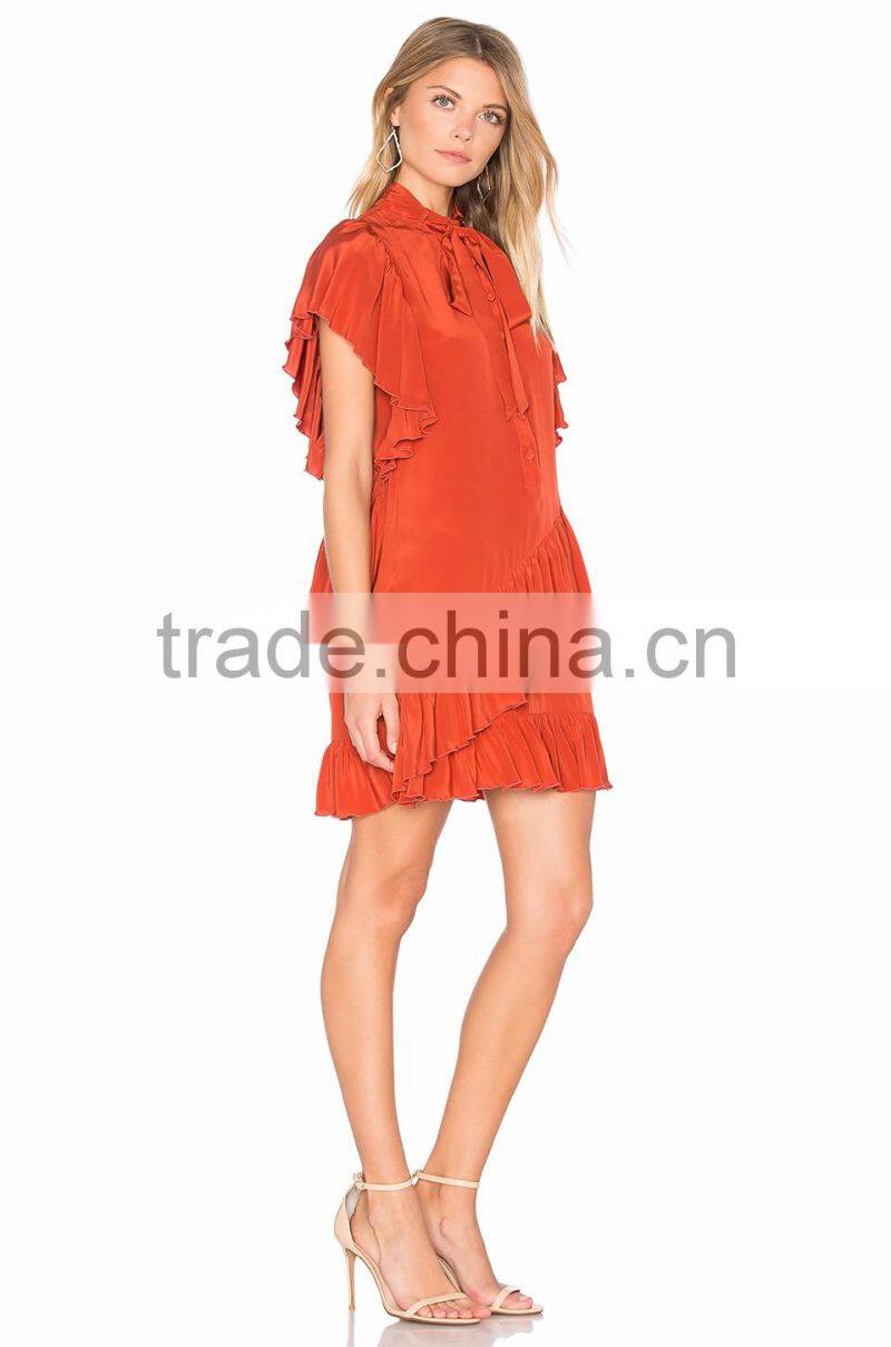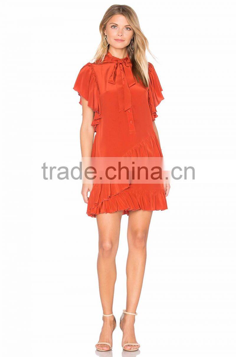 Smart Lady Summer Dress Ruffle Design Neck Bow Women Casual Dress