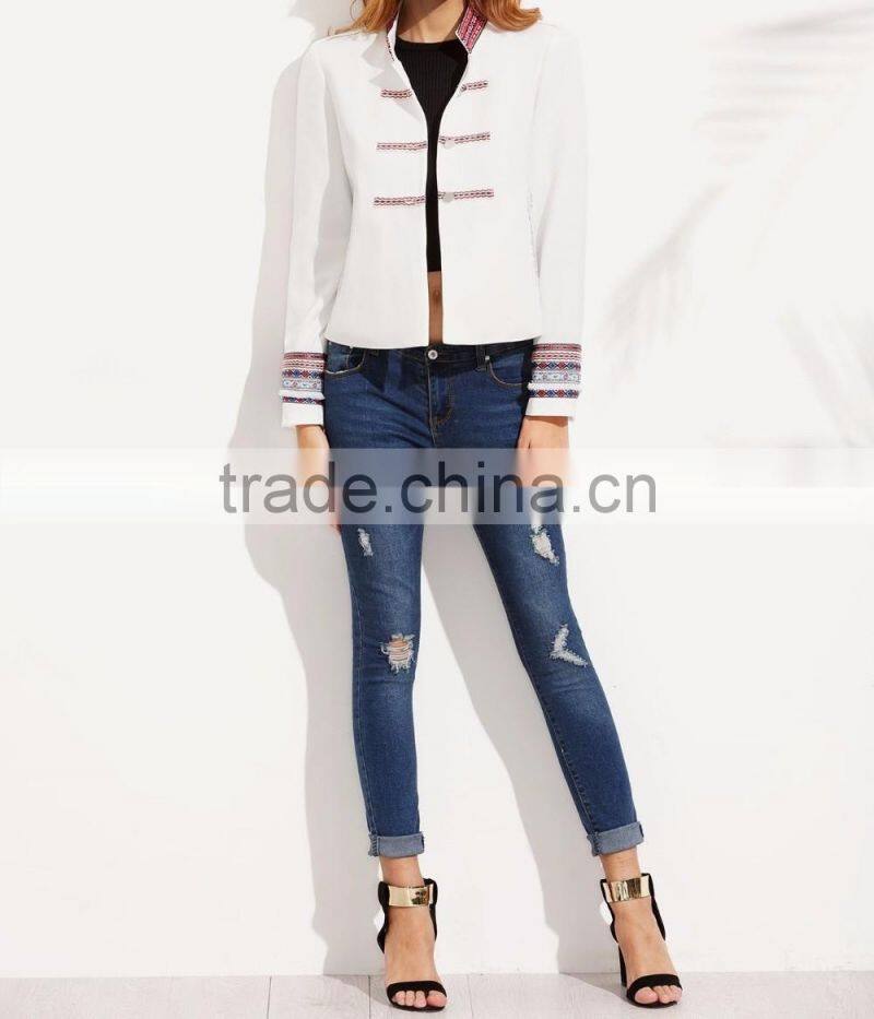 2016 Factory Price Windbreaker Soft Shell Bomber White Jacket for Women
