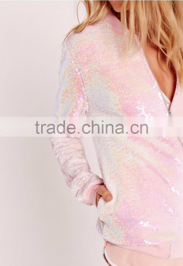 2016 high quality Guangzhou clothes sequins bomber jacket
