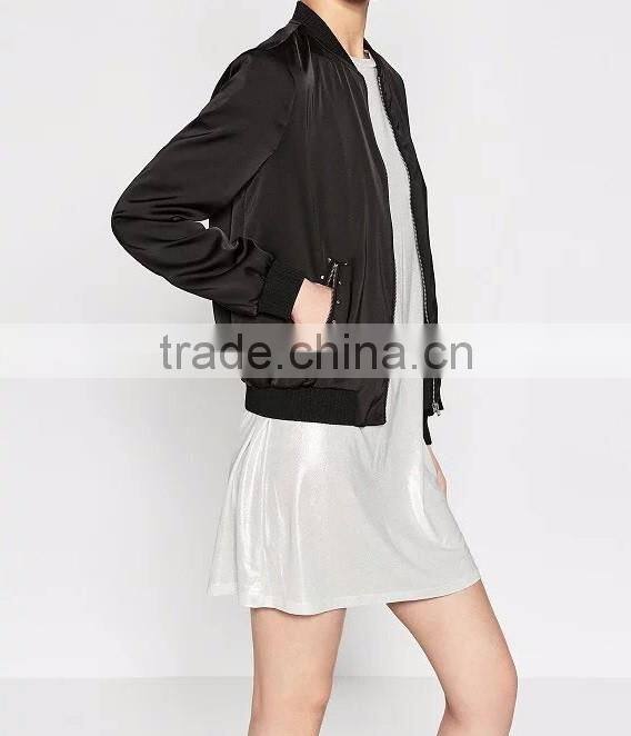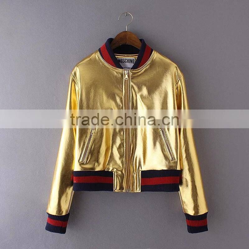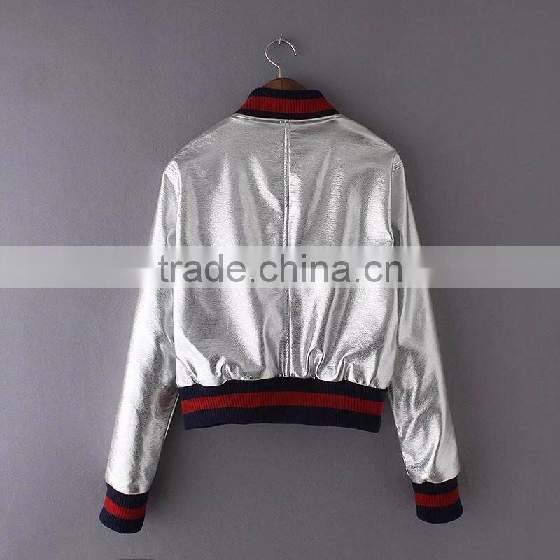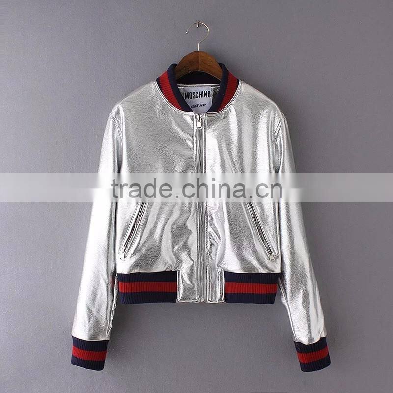 Guangzhou Wholesale Ladies Shiny Foil Jacket Fashion Design Women Bomber Jacket