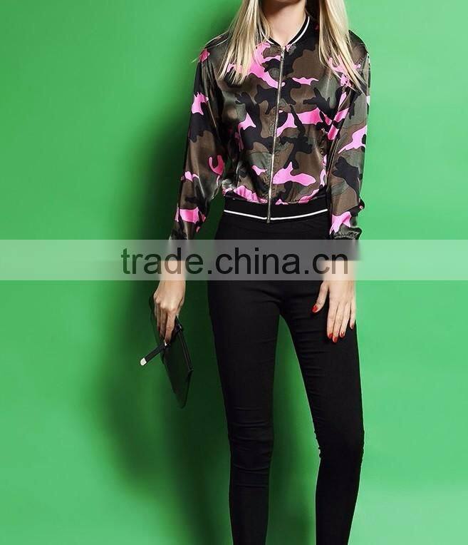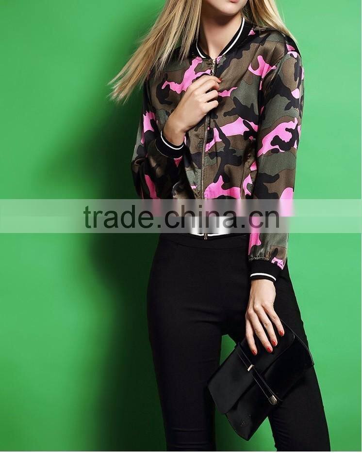 Guangzhou Clothing Women Camouflage Jacket Ladies Bomber Jacket Wholesale