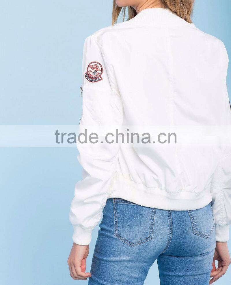 2016 High Quality Wholesale Causal Bomber Smart White Ladies Jacket