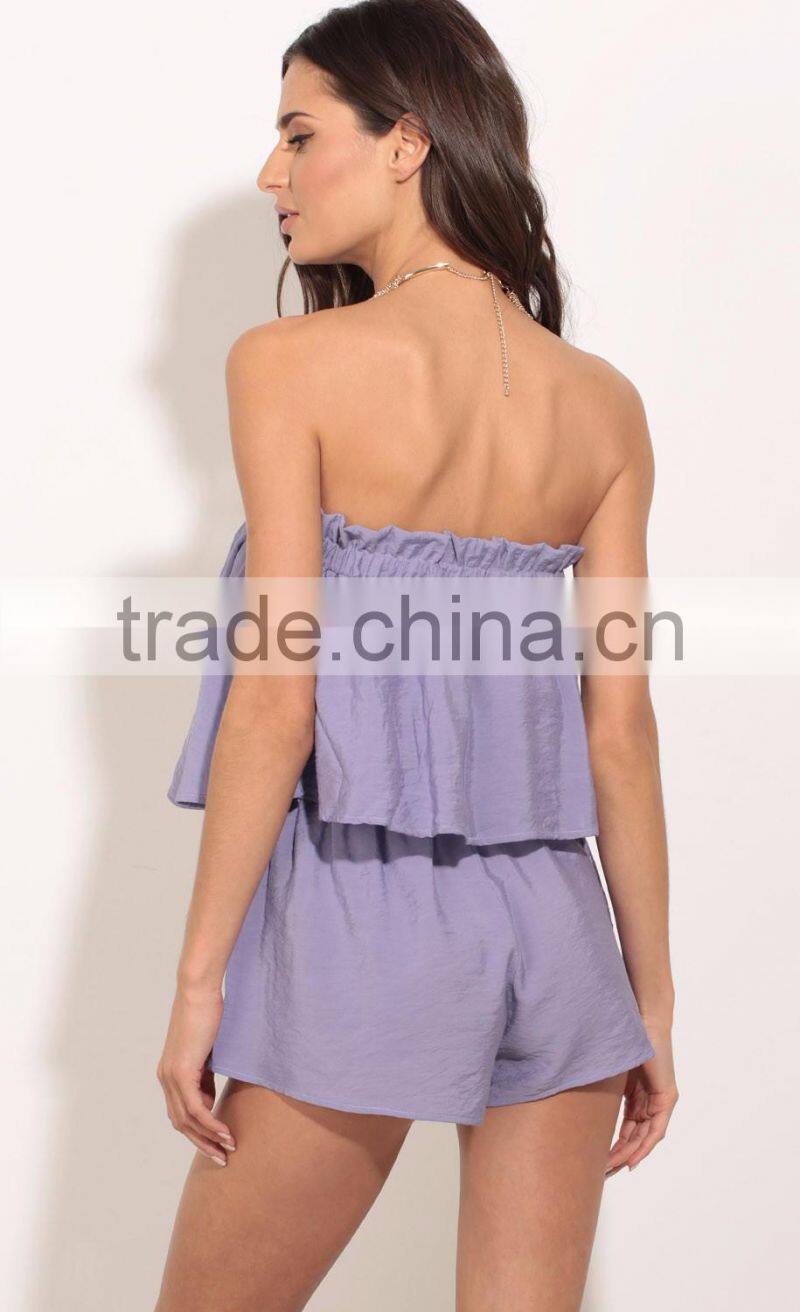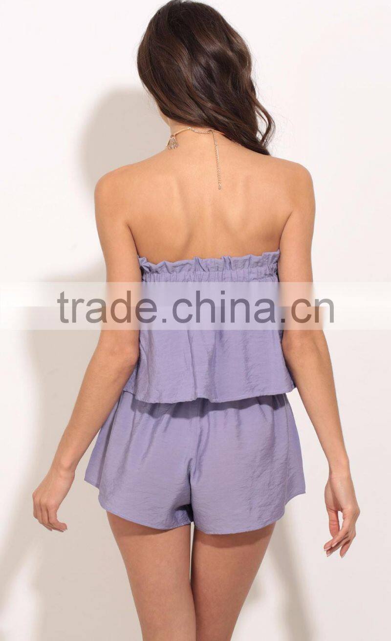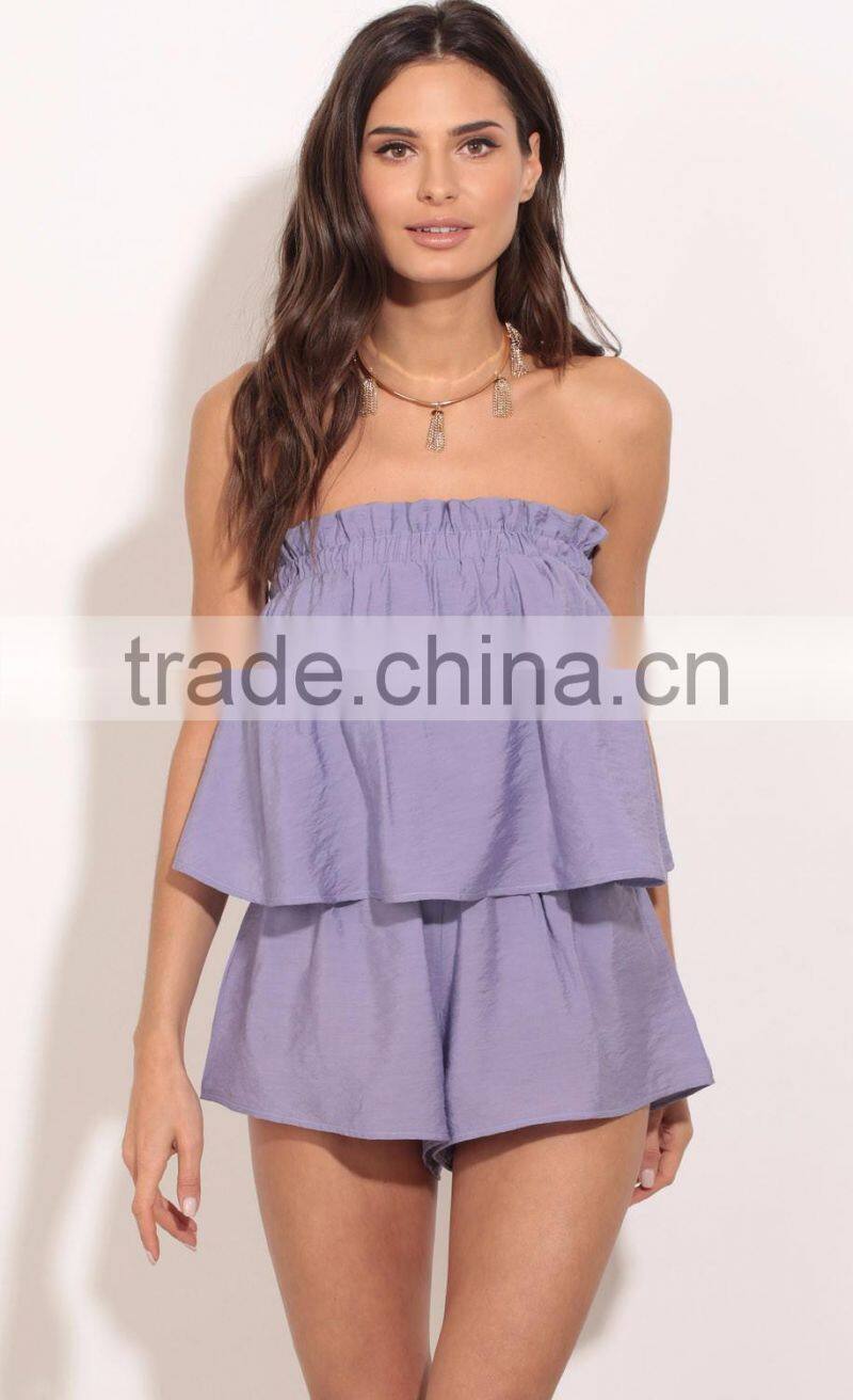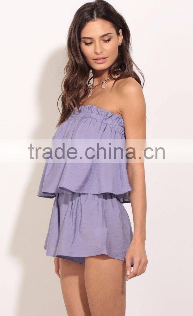 OEM Women Rompers Jumpsuit Latest Design Strapless Ruffle Playsuit