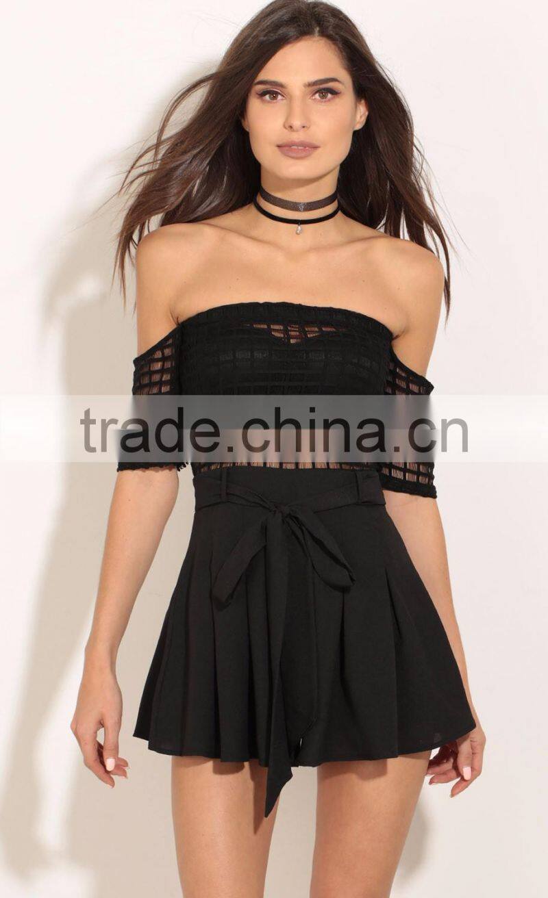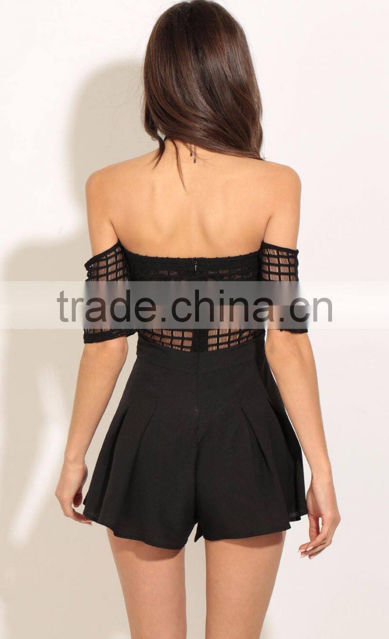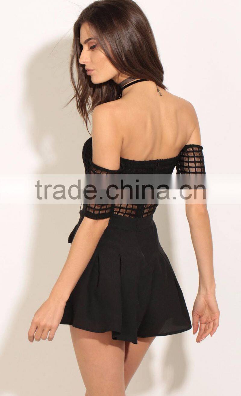 Grid Mesh Design Sexy Women Rompers off Shoulder Summer Playsuit Jumpsuit