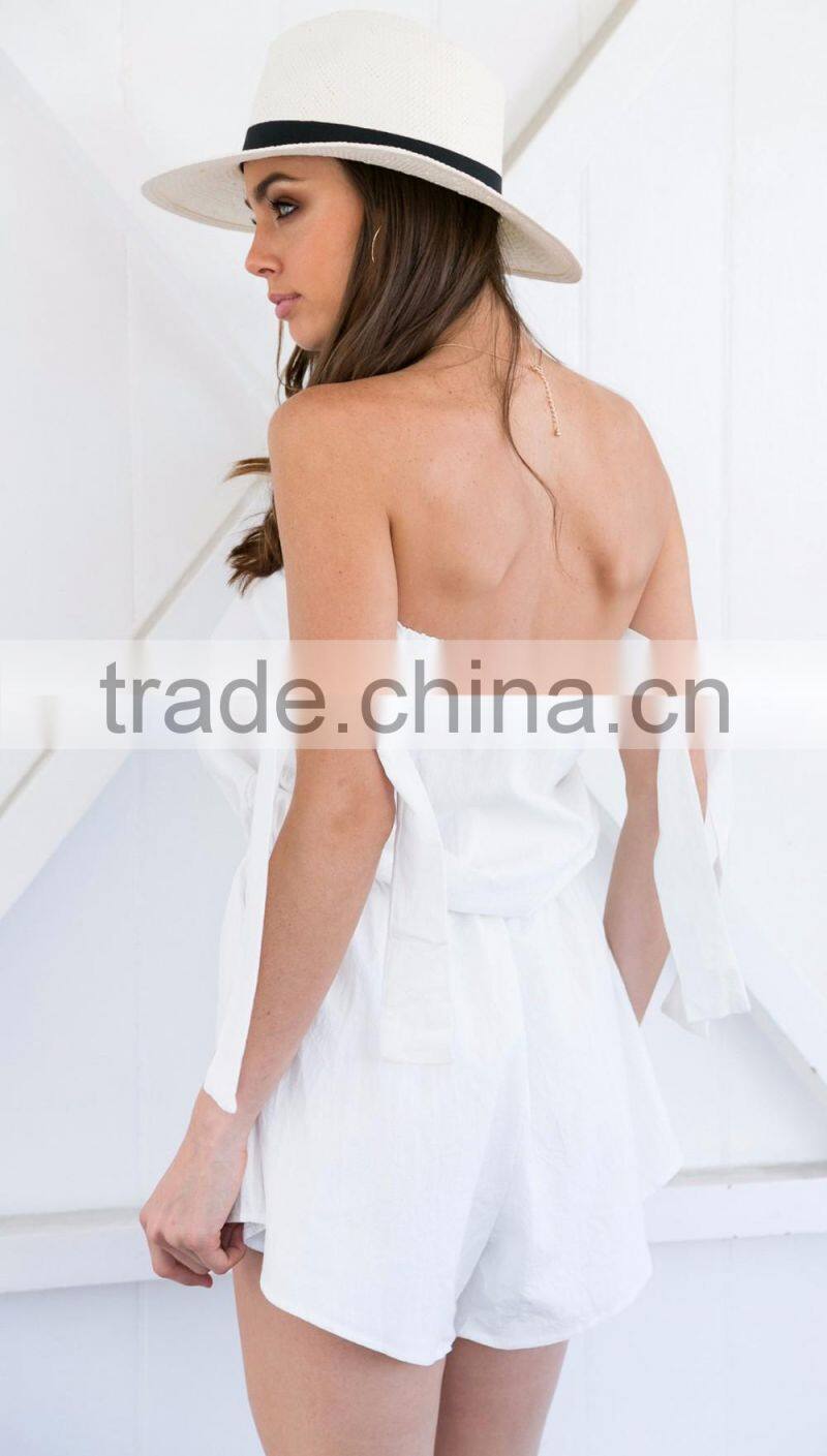 Cold Shoulder Tie Sleeve Sexy Summer Playsuit New in Style Woman Romper