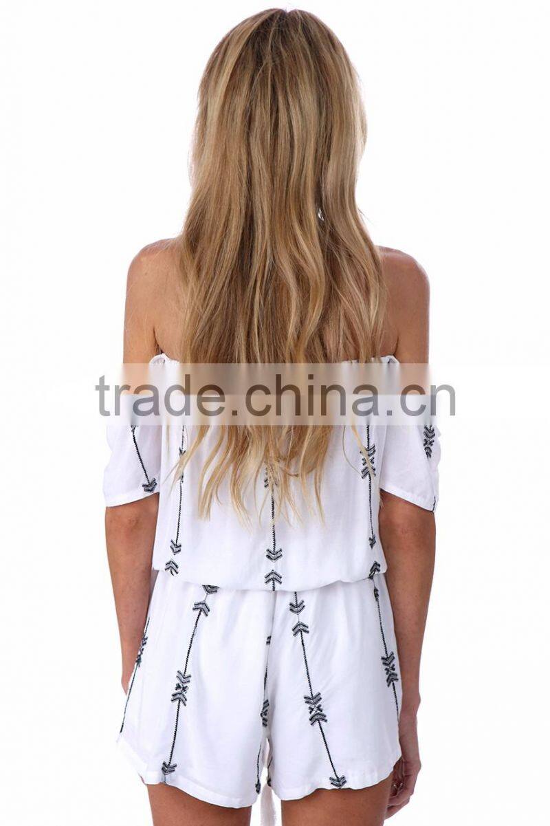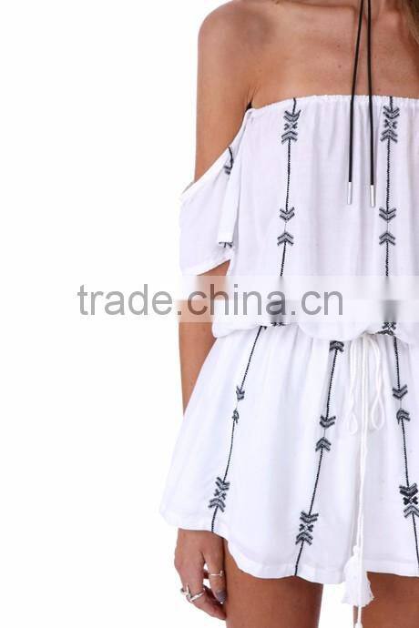 Latest Design Embroidery Romper off Shoulder Trendy Lady Romper
