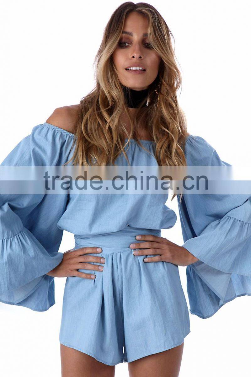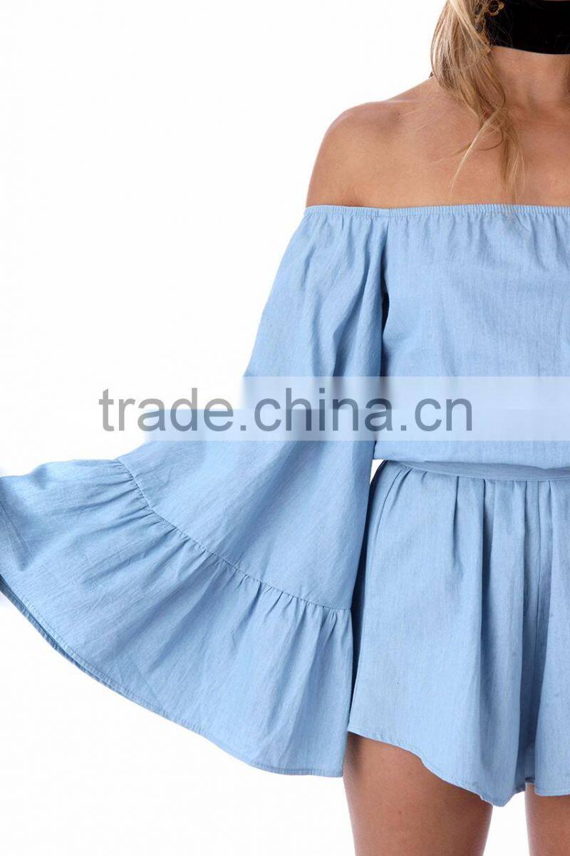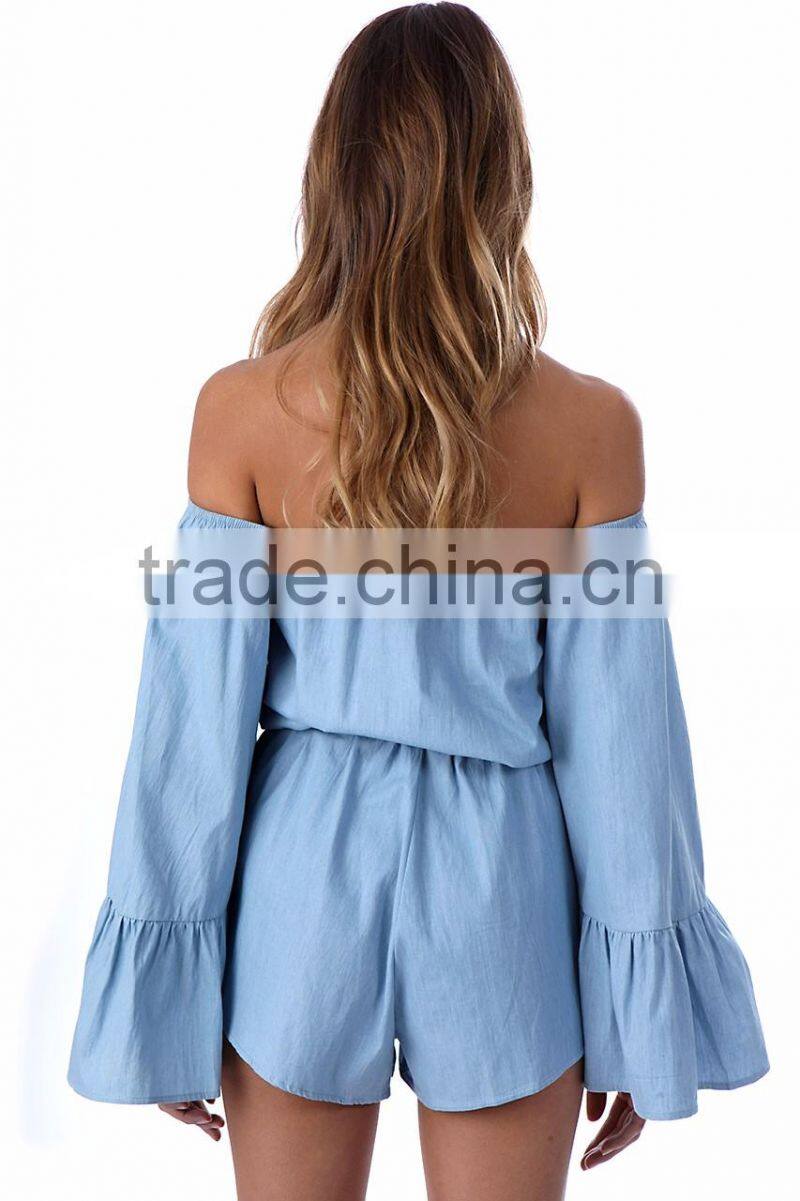 Bell Sleeve Easy Fit Chambray Romper Summer Beach Playsuit