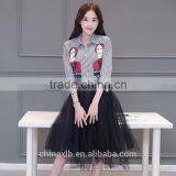 Free Shipping--2016 Winter Women New Embroidered Sleeve Lapel Wool A-line Dress Slim Woolen Dress