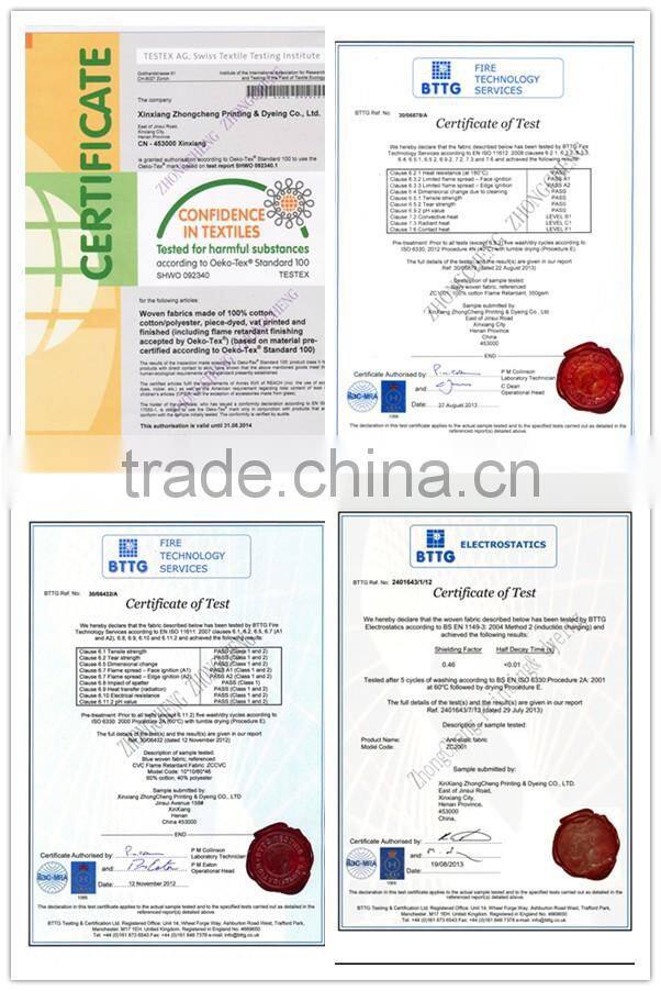 XinXiang ZhongCheng Printing&dyeing CO., LTD. is a specialized manufacturer of special fabrics. The company is committing to the research and manufacture of protective fabric since it was found in 2005. We have a full set of equipments on pretreatment, printing, dyeing, afterfinish, test. We have more than 20 professional engineers and technicians on fabric research and development, so that the quality and high perfo rmance of our products are ensured!