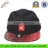 Woven Tag Snake Skin Flat Bill Strap Back 5 Panel Hat