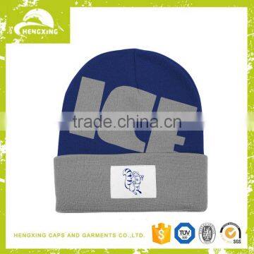 Winter Acrylic Knitted Custom Beanie With Woven Label