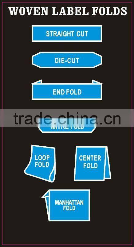 Centerfold - Centerfold labels are folded in the middle and usually sewn into a seam. Centerfold labels can also be used for sleeve and hem labels.