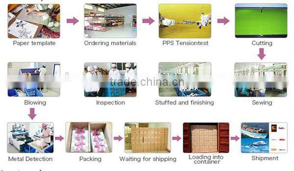 1) Plush toys material purchasing control: All materials are ordered directly from material factory, which can guarantee the materials are 100% new.