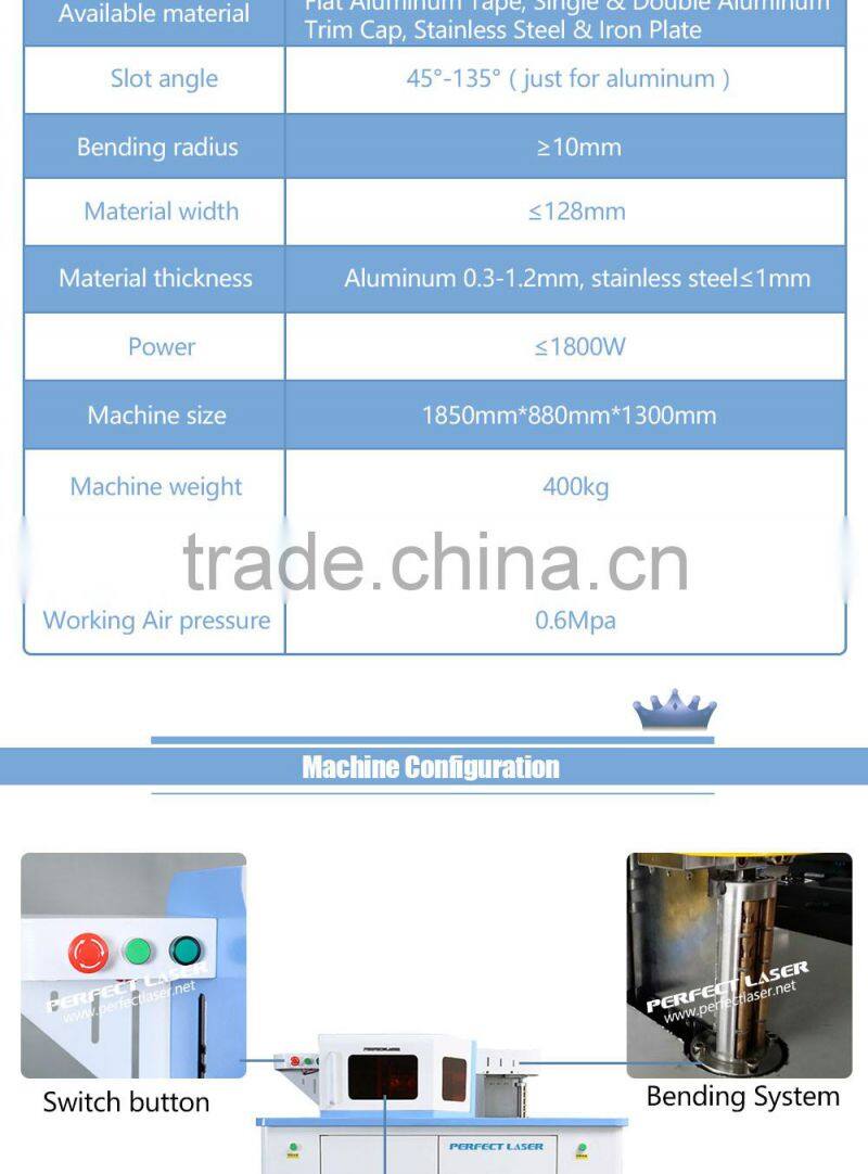Perfect Laser advertising industry channel letter bending machine,Combined automatic feeding,slotting,bending letters function into one system;