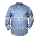 Blank Blue Bulk Cotton Business Casual Flame Retardant Shirt for Men 2013