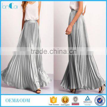 Silver Zipper Side Pleated Flare Maxi Skirt Fashionable Designs High Waist Pleated Skirt